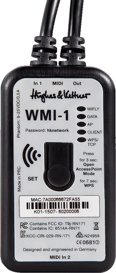 The Hughes & Kettner WMI-1 enables you to wirelessly remote control all of the functions found in the GrandMeister app for iPad. Even on stages or in rehearsal rooms where Wi-Fi is not available, the WMI-1 creates its own Wi-Fi network!