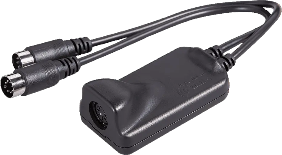 The WMI-1 features two MIDI inputs and one MIDI output. It is easily connected in-between the GrandMeister and the FSM 432 MK III footswitch, and the GrandMeister even provides the WMI-1 with phantom power.