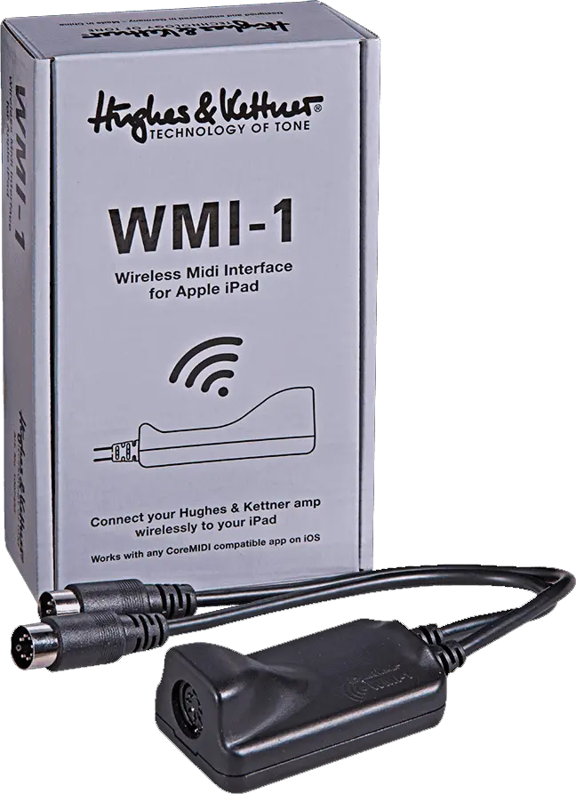 Although we have optimized the WMI-1 for use with the GrandMeister and the matching app for iPad, it also works with any Hughes & Kettner amp featuring a 7-pin MIDI input (phantom powered) and any app for iPad that supports CoreMIDI.
