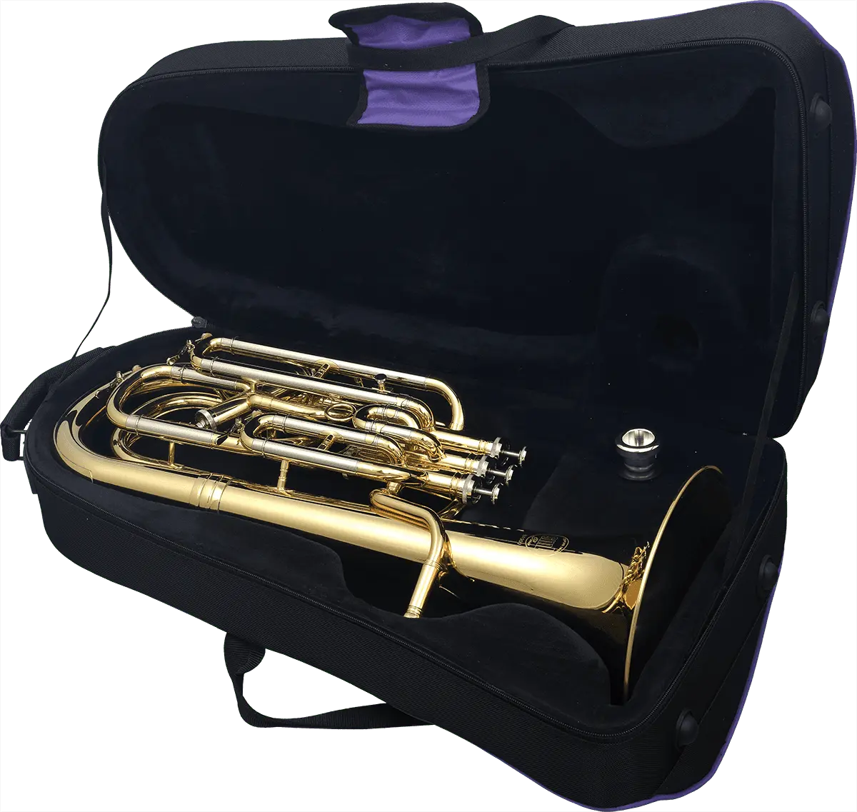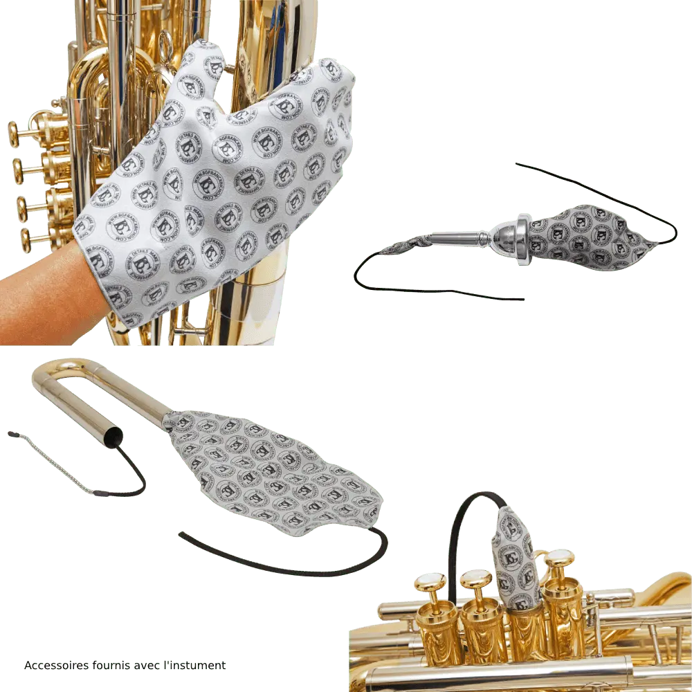 Bb. 4 piston valves (3 +1) bore 12.70 mm and 13.40 mm piston fourth. Bell 230mm. Rust proof gold brass leadpipe. Excellent response, precise intonation and a beautiful sound. Developed in close cooperation with top level musicians. Ideal for brass bands as well as for children. Recommended for music school. Weight 2.560 kg, height 60cm. Soft-case backpack.