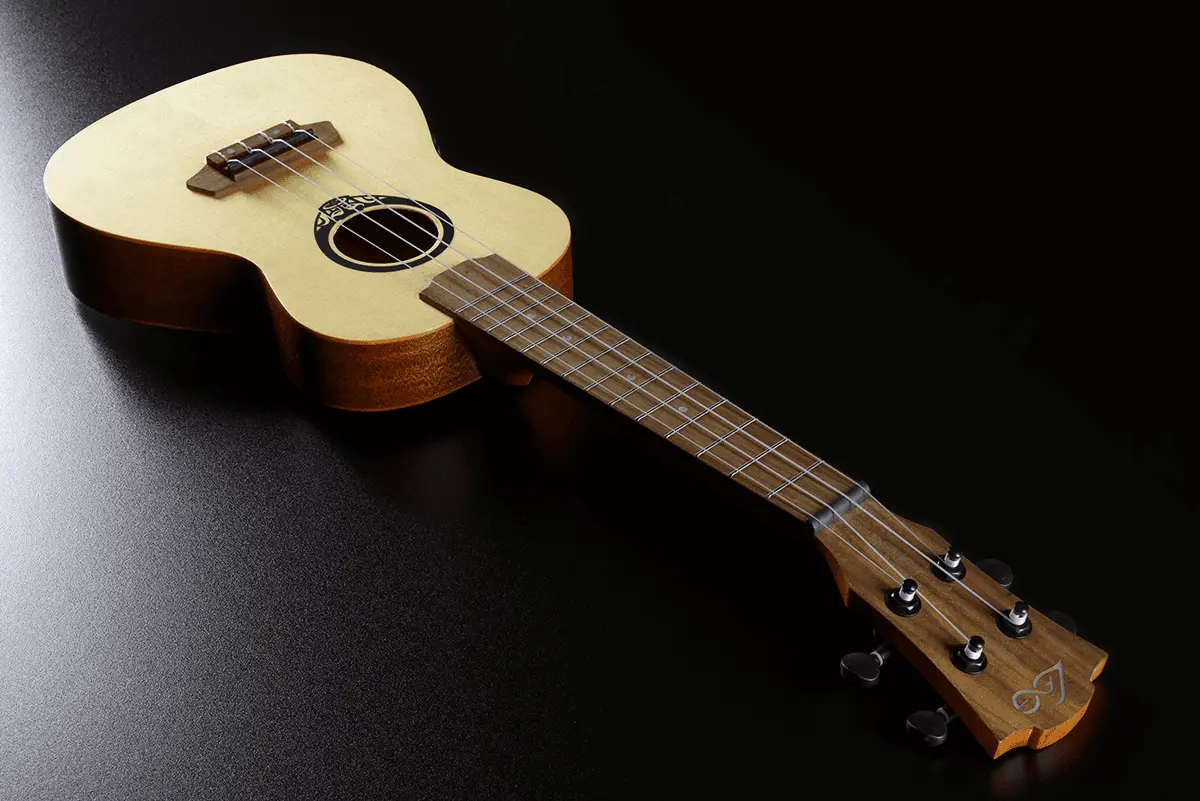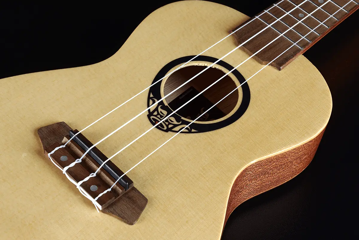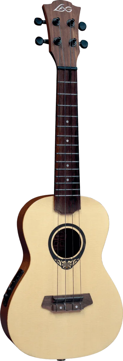 Concert size ukulele, with a slim body, these ukuleles benefit from a solid spruce top. These arched back ukes feature a Shadow preamp and tuner, a natural satin finish that highlights the grain of the wood and come complete with a padded gigbag.