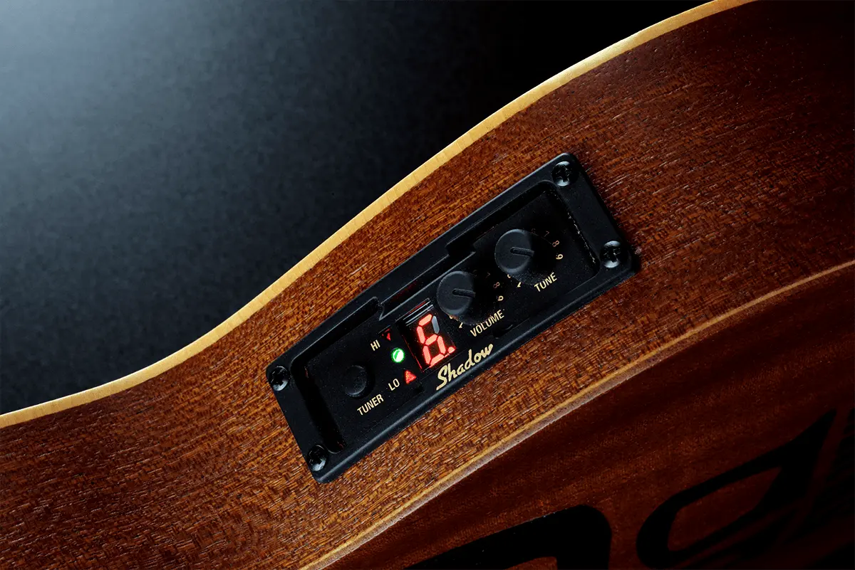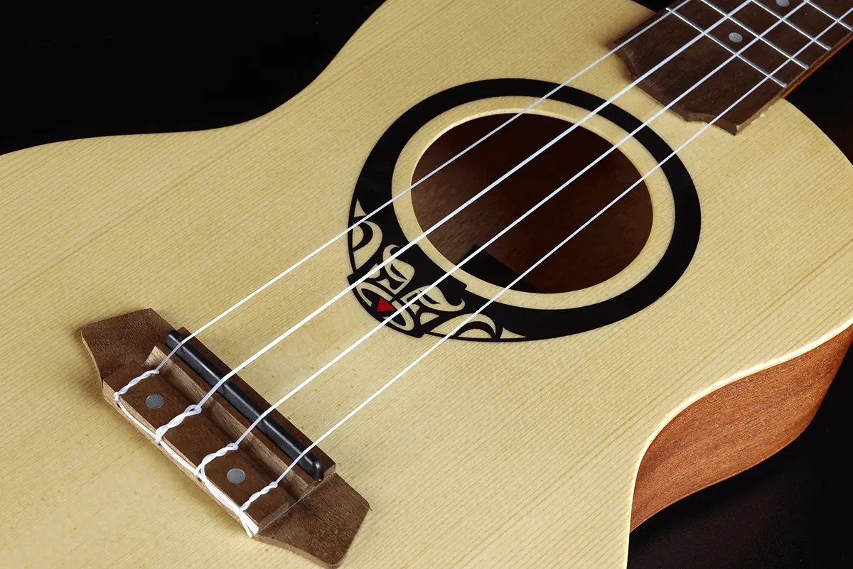 Tenor size ukulele, with a slim body, these ukuleles benefit from a solid spruce top. These arched back ukes feature a Shadow preamp and tuner, a natural satin finish that highlights the grain of the wood and come complete with a padded gigbag.