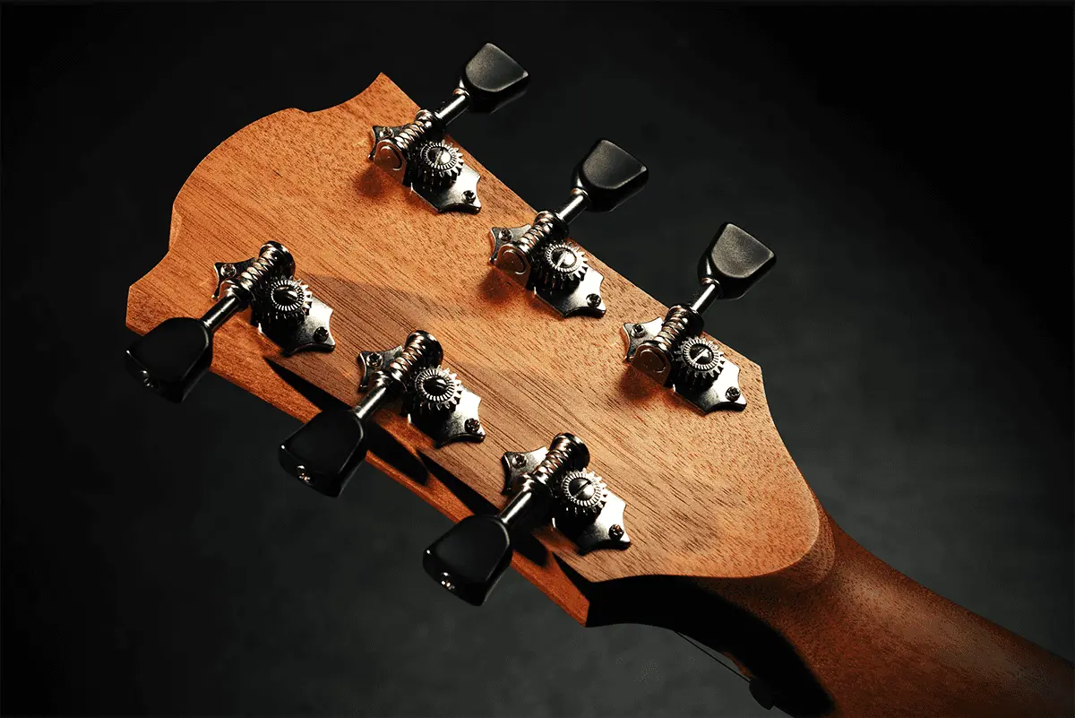 The guitar draws from Lag's renowned Tramontane series, including the iconic mirrored headstock and bridge shapes, crafted from BrankoWood. Black tuning pegs and elegant body bindings offer a distinctive and comfortable appearance.
