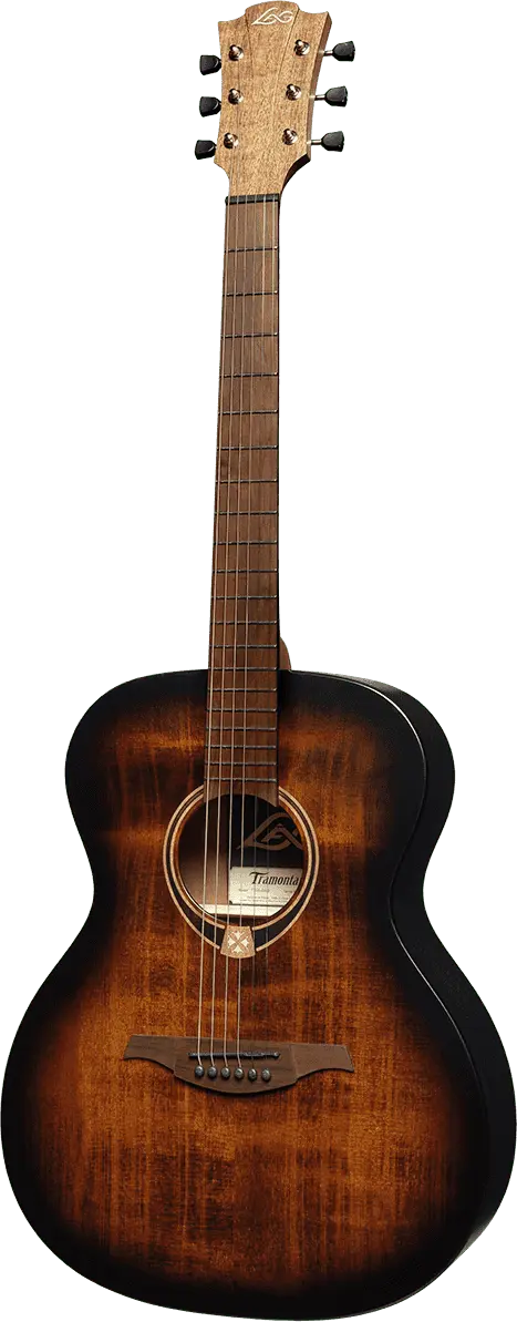 Inspired by Lag's renowned Tramontane series, this guitar showcases elements such as mirrored headstock and bridge shapes made from BrankoWood. The addition of black tuning pegs and elegant body bindings emphasizes its unique and comfortable appearance.
