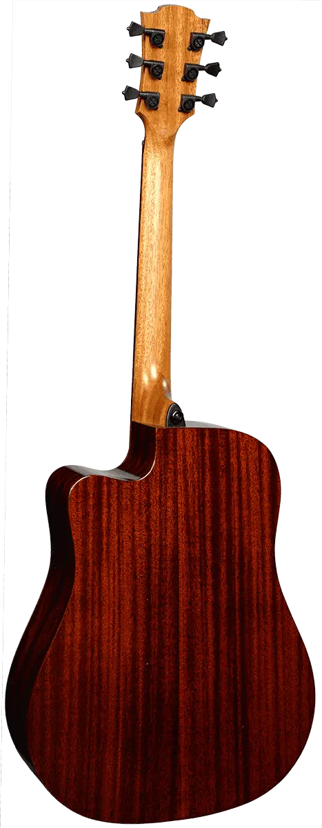 Featuring a powerful dreadnought cutaway shape, the T118DCE ensures an expansive and resonant sound. The body, adorned with a glossy varnish finish, pairs with a solid Red Cedar top and Khaya back and sides to create both visual appeal and tonal excellence.