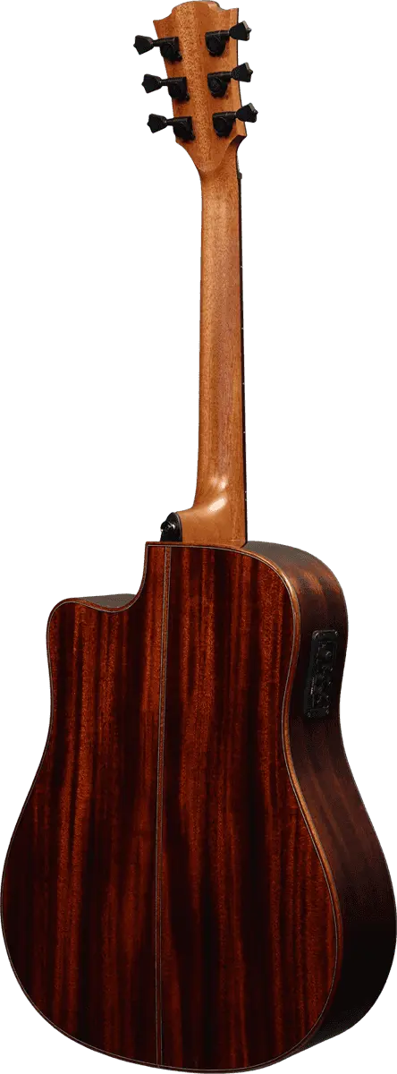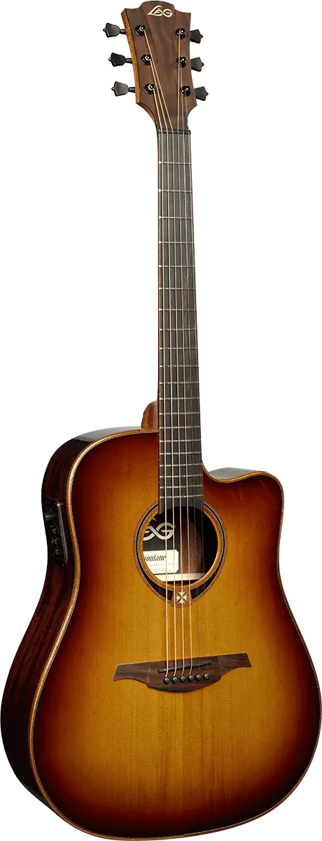 The T118DCE-BRS showcases Lag's commitment to quality, from the black graphite nut, saddle, and bridge pins that complement the black die-cast machine heads, to the BrankoWood headstock, bridge, and fingerboard. The quarter-round body bindings add to the charm and also enhance the playing comfort, making the T118DCE-BRS a pleasure to play for musicians of all levels.