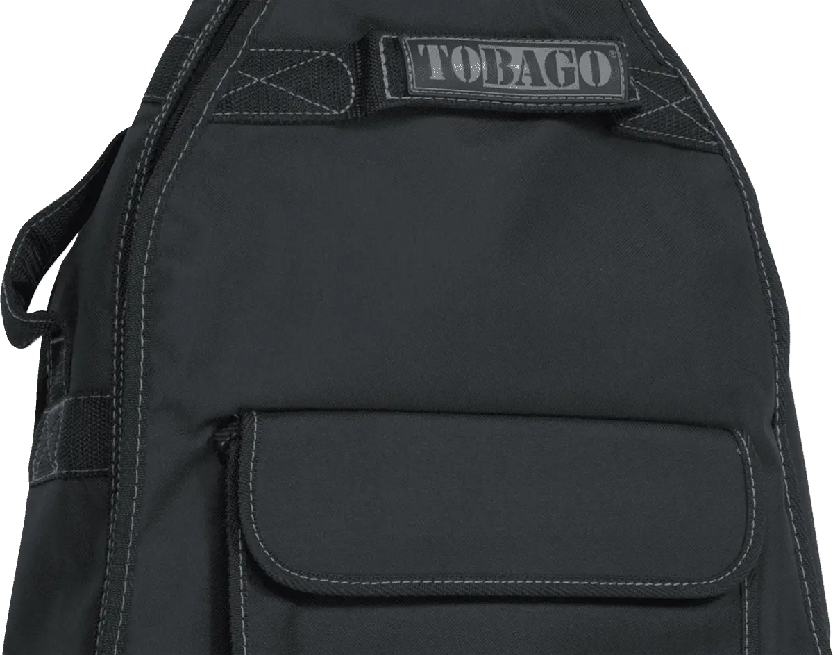 Polyester 600D PVC, inside with 210D and 5mm foam sponge, 1 front pocket for accessories, 2 adjustable nylon straps, 2 padded handles (at the front & lateral). Black color.