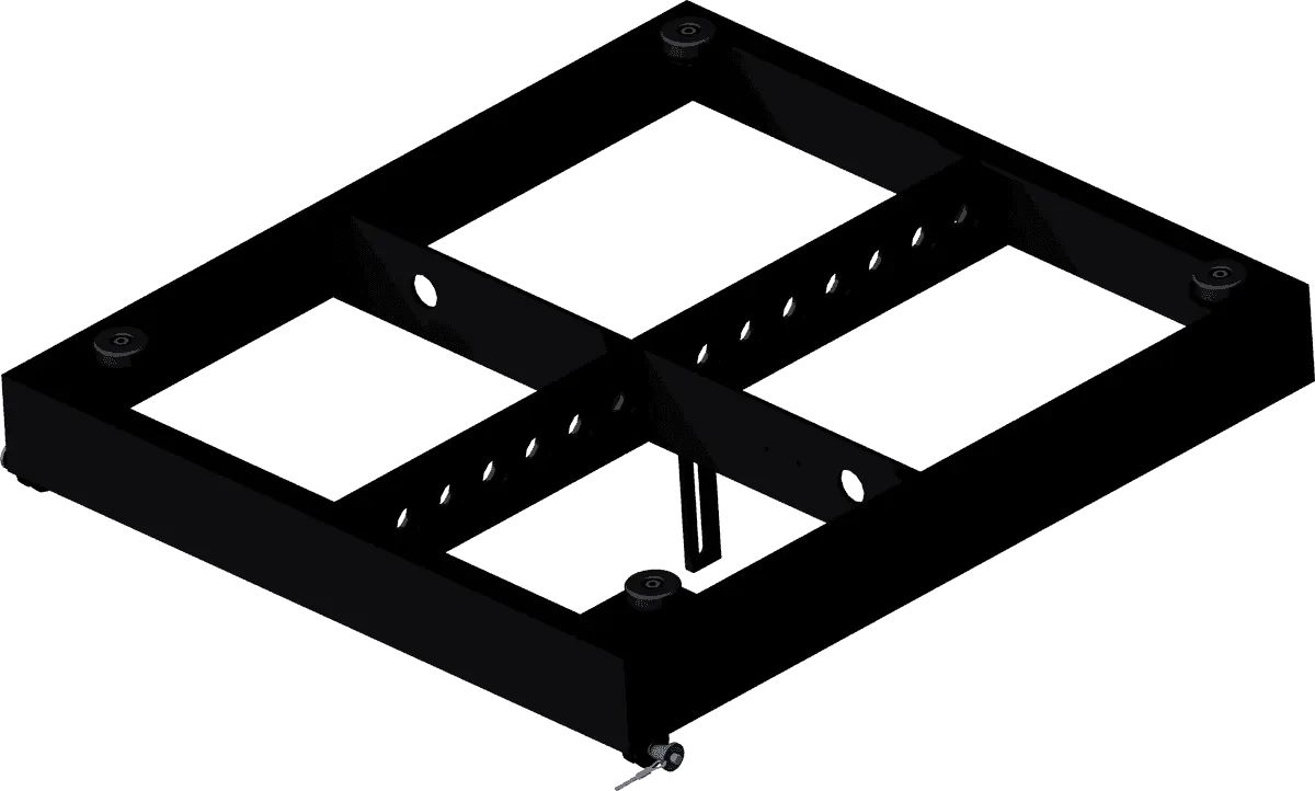 This black rigging harness holds up to 24 flown CAD 208 units and, with the connector set, serves as the base for stacked configurations with the CAD 115 Sub. It is TÜV/BGV-C1-certified.