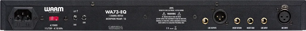 The WA73-EQ is a “Desert Island” boutique preamp, but it can also be classified as a studio and live work-horse. Classic '73-style preamps are known for being versatile tools that work with all kinds of microphones from Condenser, to Dynamic, to Ribbon. The WA73-EQ equally shines on all types of microphones and sources including; vocals, acoustic/electric guitars, bass, drums, percussion, orchestras, keyboards, and even as a tone shaping tool to run partial or complete mixes through. With 80dB of gain and a fully discrete Carnhill Transformer balanced signal path, there’s no recording, mixing or engineering task that the WA73-EQ can’t handle.