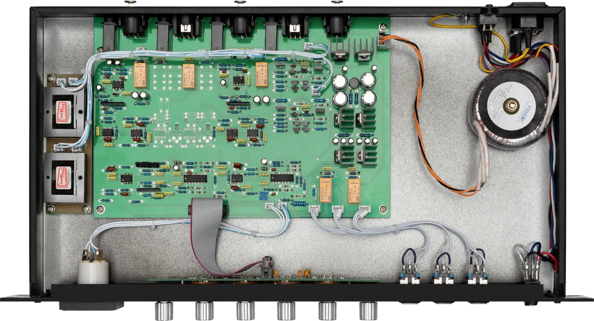 Re-creating legendary VCA bus compressor technology was the focus of the BUS-COMP’s design, however, adding options and improvements was just as important to us during its development. One feature we are proud to boast is the BUS-COMP’s ability to have USA made CineMag transformers inserted into the signal path driven by fully discrete operational amplifiers. With a single push of a front panel switch, these custom USA made transformers are inserted into the audio’s path providing increased depth, tone and vibe!