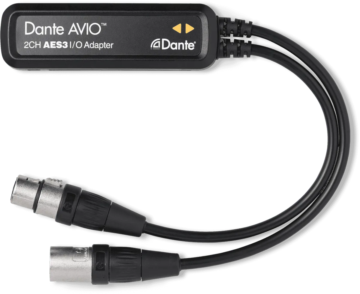 Med Dante AVIO AES/EBU adaptern kan du använda dina enheter med digitala anslutningar i ett Dante nätverk. Överge inte AES3 kompatibla förstärkare, DSPs och mikrofonförstärkare! Ta med dem in i digitala nätverkens värld!
