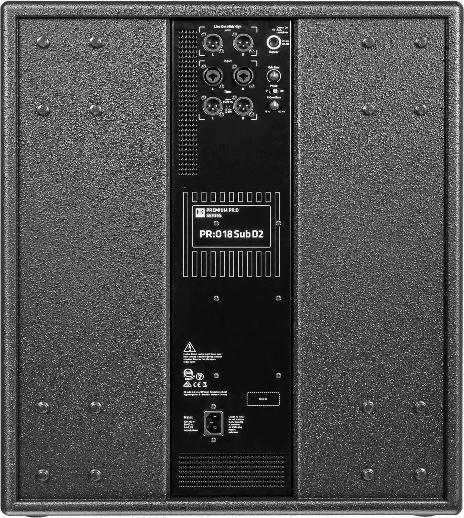 The 18″ bass reflex subwoofer produces a deep and powerful bass foundation with its 1,200 watts of power. This all-round subwoofer can be used for a wide variety of applications thanks to its stereo preamp and corresponding outputs. The classic setup can be implemented either as a half or full stack, and a 2.1 system can be created with ease thanks to the two mid/high outputs. The subwoofer takes care of the filtering required for this. This means that tops that do not have their own filtering can even be connected.