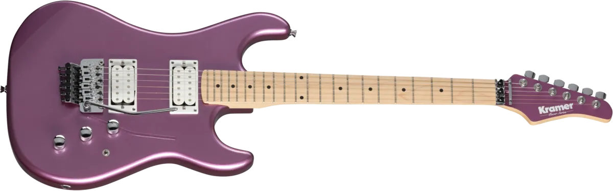 The Pacer Classic is part of Kramer's Original Collection and is a superb tribute to the original 1982 Kramer that knocked the guitar world for a loop. The Pacer Classic is built for speed, with a 25.5" scale maple neck with a Kramer K-Speed SlimTaper™ C profile and 22 medium jumbo frets. The Pacer Classic has chrome hardware, an alder double-cutaway body, a pair of double white, open-coil Alnico Classic 5 humbuckers™, and a licensed Floyd Rose® Tremolo bridge and R2 Locking Nut. Available in Radio Blue Metallic, Scarlet Red Metallic, and Purple Passion Metallic gloss finishes.