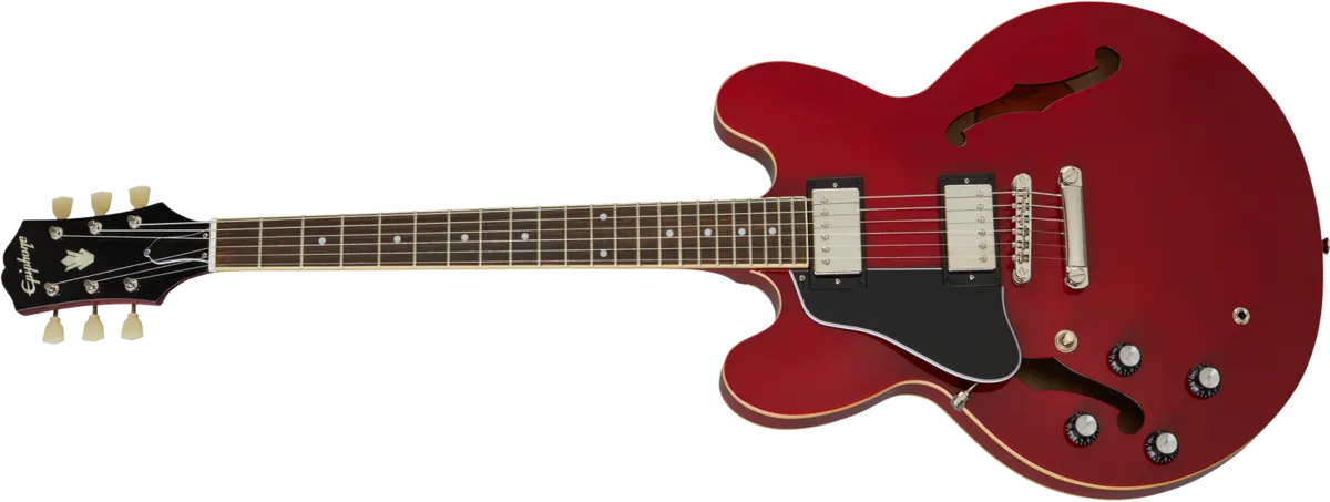 The ES-335 is Epiphone's version of the historic ES-335 that has been wowing guitar players all over the world for over six decades. From its inaugural appearance in 1958, the Gibson™ ES-335 set an unmatched standard. Our Epiphone ES-335 is no exception. It is simply one of the best deals today for guitar players who want the classic sound of an ES-335 at an accessible price. The ES-335 is crafted with a layered maple top, back, and sides coupled with a solid maple tone block to create the amazing sustain, warmth, and resonant tone that players crave in a semi-hollow instrument. Epiphone's Alnico Classic PRO™ Humbuckers deliver a wide range of vintage sounds while the rounded C neck profile is extremely comfortable and easy to play, and the headstock features the 60s style Kalamazoo shape.