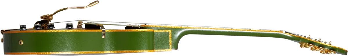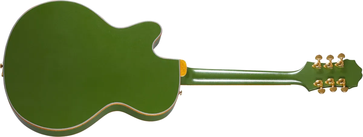 The Epiphone Emperor Swingster™ is a way-cool guitar that excels in a wide range of genres, including jazz, blues, rockabilly, country and rock. This hollowbody has a 5-ply layered maple body, mahogany neck with a comfortable and fast-playing SlimTaper™ profile, Indian laurel fretboard with block inlays, mother of pearl Epiphone and Tree of Life inlays on the large Clipped Dove Wing headstock, Grover® Rotomatic® tuning machines, and two Epiphone SwingBucker™ pickups, each with a dedicated volume and tone control. Push/pull switches are built into each volume control to provide series/parallel switching for the pickups, and along with the 3-way toggle pickup selector switch, give you a broad selection of tonal options. The LockTone™ Tune-O-Matic™ bridge is mounted on a pinned wooden base so it won't move out of place when you use the licensed Bigsby® vibrato with wire handle. Available in Forest Green Metallic with gold hardware, or Black Aged Gloss and Delta Blue Metallic finishes with nickel hardware.