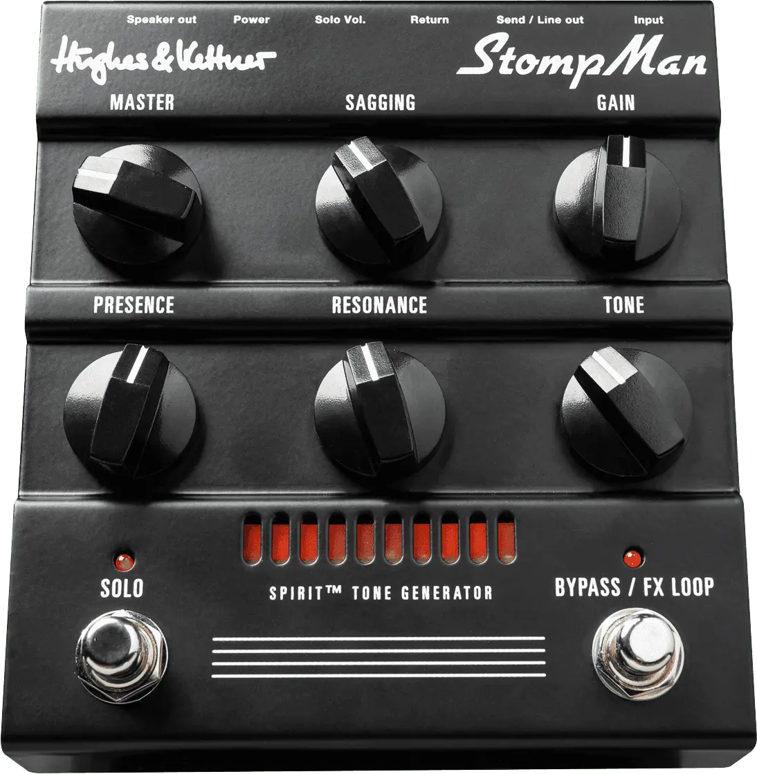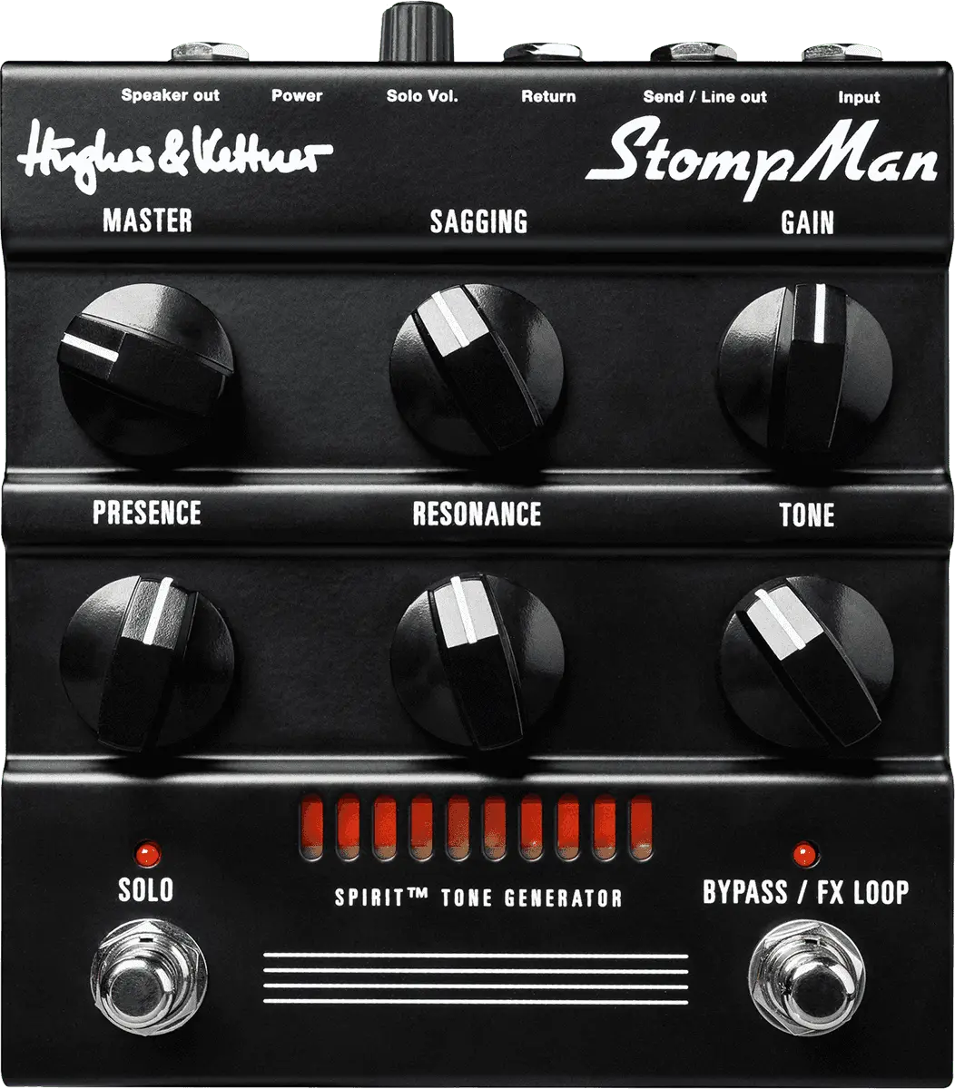 The Hughes & Kettner StompMan is a full-fledged premium guitar amp in stompbox format. Able to deliver remarkable sound pressure levels, it serves up professional tone powered by Hughes & Kettner’s Spirit Tone Generator technology. The StompMan was engineered to bring out the best in effects plugged into its input and FX loop. With this pedal-friendly design and a host of connection options, the StompMan is the perfect hub for every pedalboard and an ingenious go-to/ always-on amp for every occasion.