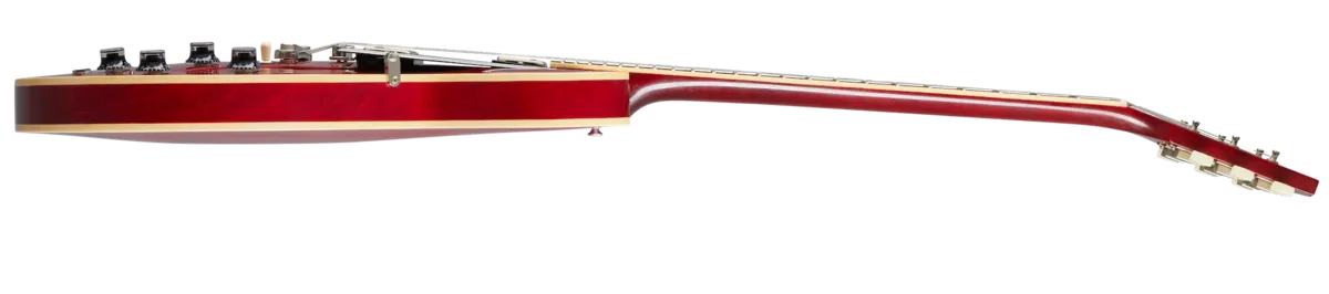 The Historic Reissue ES-335 is back and better than ever thanks to a year of studying, scanning, and listening to original examples. The expert craftspeople at Gibson Custom Shop have rendered every contour, profile, inlay and color of the priceless vintage models in magnificent detail. The result is a playing and ownership experience that will keep you coming back for more. The 1964 Reissue models utilize sharp horn cutaways, medium C-shape neck profiles scanned from originals, small block inlays and vintage-replica parts.