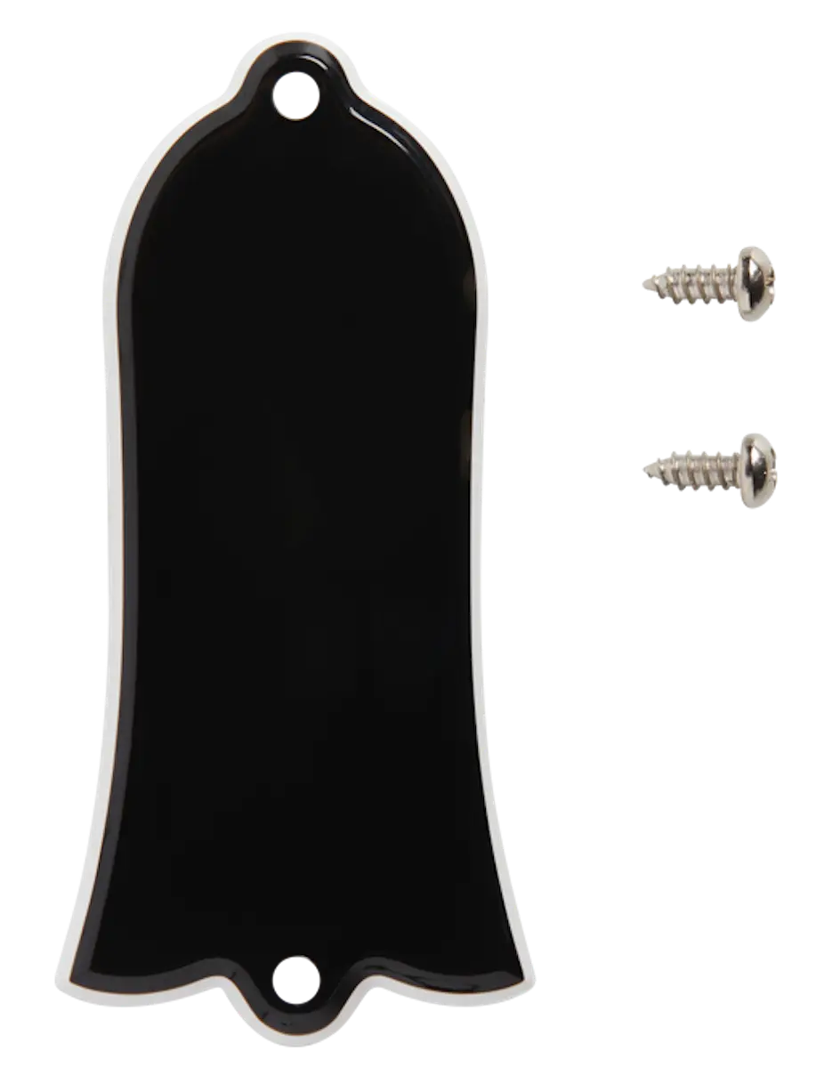 An original, blank OEM replacement truss rod cover, including the screws for installation. This two-ply truss rod cover is made of ABS plastic and has no inscription. Available only in black.