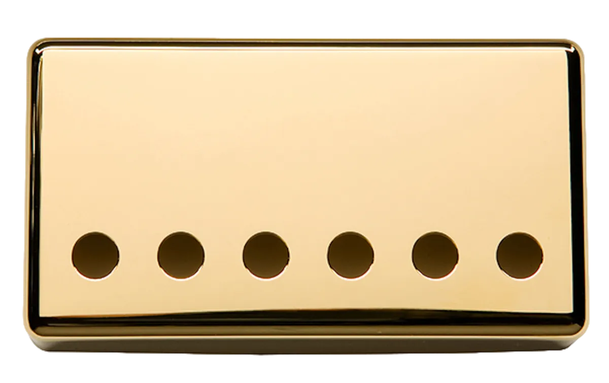 An original OEM replacement or restoration pickup cover that fits perfectly over any bridge position Gibson humbucker, with a measurement of 52 mm between the centers of the outside poles.