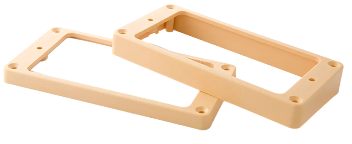 This pair of full-size OEM humbucker pickup rings is made from ABS plastic, and are the same specs as the rings found on Gibson's historical vintage guitars of the 1950s. The neck pickup ring accurately measures 1/4" , and the bridge measures 1/2". Includes the mounting screws, and available only in crème color.
