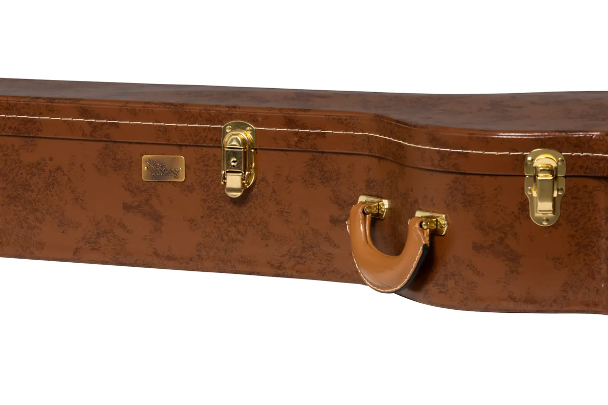 Since 1918, Lifton™ has been acclaimed worldwide for fine leather goods and musical instrument cases that are as synonymous with Gibson as the instruments inside of them. Lifton continues that tradition of excellence today with our Lifton Historic Hardshell Cases. Inspired by the iconic cases from the 50s and 60s that were made during the height of Gibson's Golden Era, they feature classic styling and are designed to provide a lifetime of protection for your prized Gibson guitar. Designed to fit: 50s SJ-200 (fits most J-200™ models) Exterior: Mottled Brown Tolex Interior: Pink Plush Historic C-shaped handle Historic style latches with one locking latch Accessory compartment with ribbon pulltab Internal dimensions: 44 1/4' total interior length, 24 3/4" body length, 12 7/8" upper bout width, 10 7/8" waist width, 16 1/2" lower bout width, 4 3/8" depth