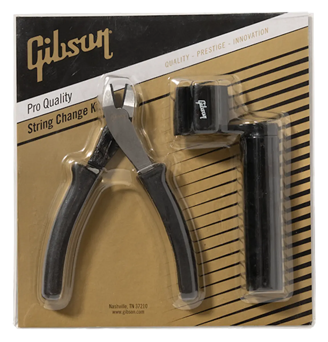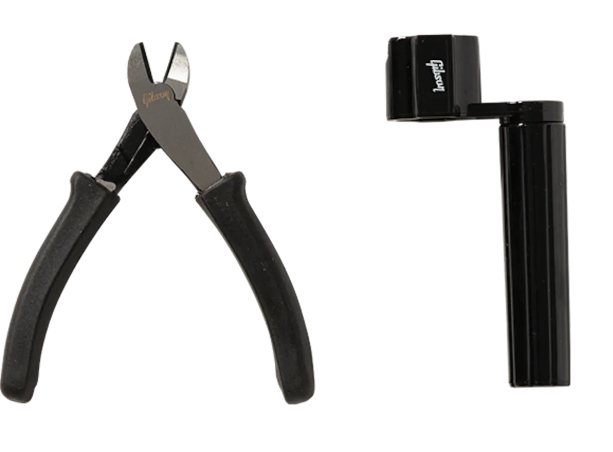 The Gibson String Change Kit includes all the tools you need to change your guitar strings like a pro. The heavy-duty string winder features a high-quality axle that allows for smooth, wobble-free rotations, a jumbo-sized grip, and a handy built-in bridge pin puller. The sharp, pro-quality string cutters feature ultra-soft grips that are built for comfort, making string changes simple. This kit is an essential accessory for any player’s guitar case.