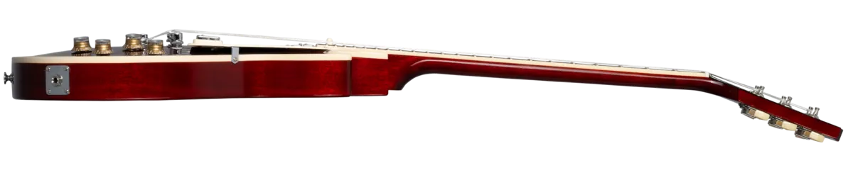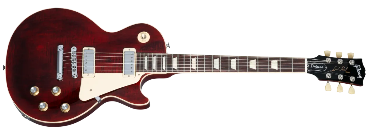First released in 1969, the Deluxe saw the introduction of the Mini Humbucker™ to the Les Paul™ lineup. Mini Humbuckers retain the hum-free performance of their full-sized cousins but with a somewhat clearer and brighter tonality. The new Deluxe has features that were inspired by those early models from the 1970s, with a non-weight relief mahogany body and bound maple top, a bound mahogany neck with a Rounded C profile, vintage-style Keystone tuners, a Graph Tech® nut, and a traditional Les Paul control layout with 2 Volume and 2 Tone controls hand-wired with Orange Drop® capacitors.