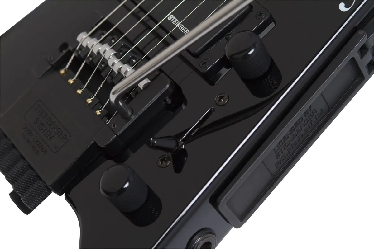 The Steinberger GT-PRO is powered by Steinberger’s versatile humbucker pickups in the neck (HB-2) and bridge (HB-1) positions along with full-range Steinberger SC-1 single coil pick up in the middle position. Controls include Master Volume, Master Control, and a 5-way pickup selector.