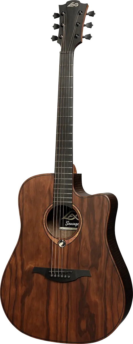 The Lag Sauvage-DCE is a dreadnought cutaway electro acoustic marvel that continues Lag's tradition of crafting beautiful and innovative guitars. With its StageLag preamp system and unique design, the Sauvage-DCE offers exceptional playability and a rich tone. The eco-friendly certified BrankoWood and eco-friendly varnishing process manifest the brand's commitment to sustainability, while the rough sawn look and rounded back reflect a robust and adventurous spirit.
