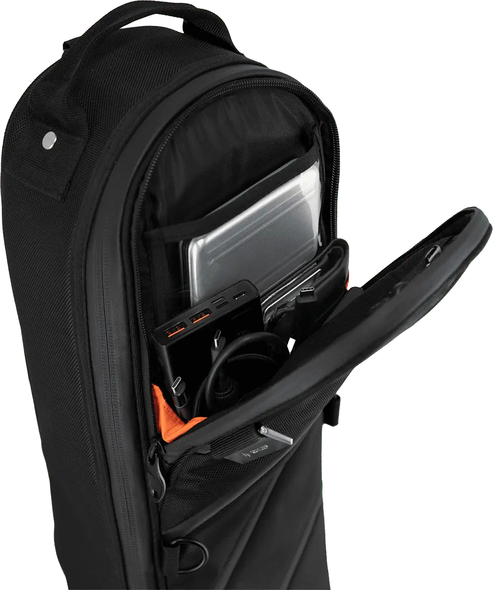 Sharkskin's great, but 1680D Ballistic Nylon is a total game-changer and the material of choice for the Vertigo Ultra. It's water-resistant, extremely tough and 100% animal-free. Selected outer panels now come with reflective trim, making the Vertigo Ultra your trusty sidekick for underground gigs and late-night commutes.