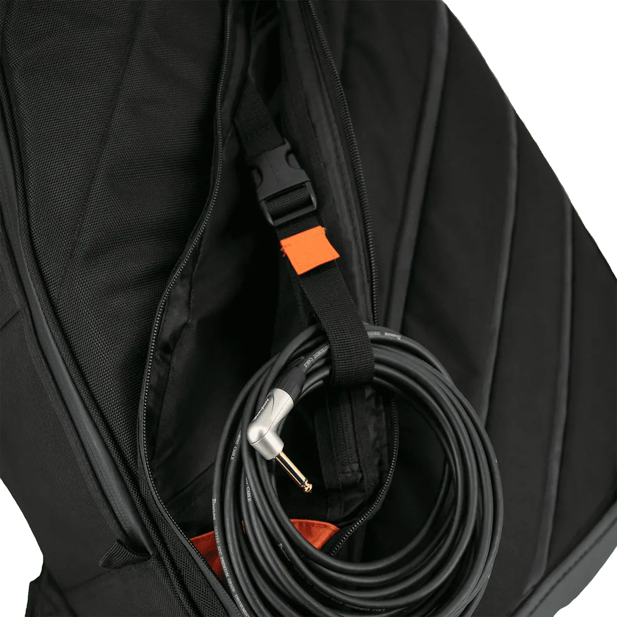 The Vertigo Ultra features our proprietary Headlock® neck suspension system. No strapping, buckling, or belting required. No extra steps. Just throw your guitar in and the neck finds a natural resting point in the base of the Headlock®. Then zip the case up and the top section of the Headlock® automatically clamps down over the neck, holding it firmly in place. Your headstock is now fully protected against backward drops and side-to-side impact. Lightning fast!
