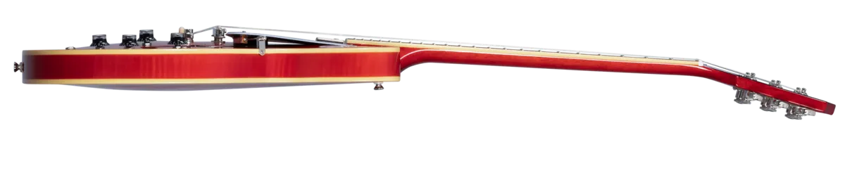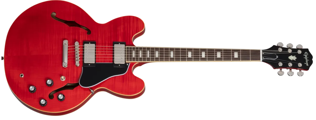 Marty Schwartz, or as he's better known on the Internet. Marty Music, has been the face of guitar education on the Internet for the last decade and a half. With over 3.5 million YouTube subscribers, over two billion video views, and a career longer than most rock bands, Marty has arguably taught more people how to play guitar than anyone else in the world. So as you might expect, Marty knows quite a bit about what features a great guitar should have. His new namesake signature model ES-335 from Epiphone features a smooth-playing 60s SlimTaper Rounded C neck profile with an Indian laurel fretboard. small pearloid block inlays, and a Marty Music logo on the back of the headstock. The 5-ply layered maple body is capped with a beautiful AAA-figured maple veneer and is finished in Sixties Cherry. Rock solid tuning stability is ensured by the Grover® 502C Roto-Grip Locking Rotomatic® tuners and Graph Tech® nut, while the other ends of the strings are anchored with an Epiphone Lock Tone Tune-O-Matic™ bridge and Stop bar tailpiece. The flexible electronics include Epiphone Alnico Classic PRO ™ pickups, each with a push/pull volume control for coil splitting, while the neck pickup's tone control a features a push/pull phase switch. A hardshell case is also included.