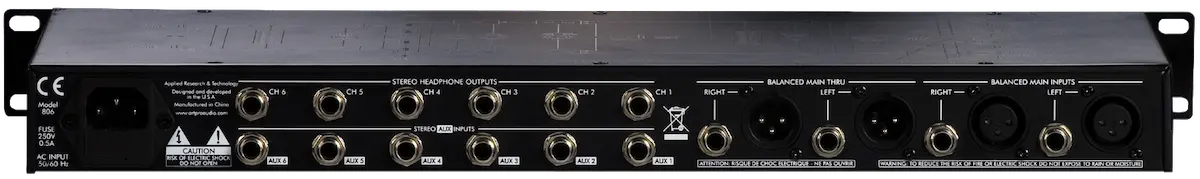 The ART HeadAmp6PRO is a six-channel stereo headphone amplifier that includes a six-channel auxiliary input section that can be used to provide the popular “More-Me” function on each headphone mix. Each output channel also features a dual function BALANCE control which will pan between LEFT & RIGHT sides of the main signal bus, or vary the MIX between the main signal bus and the AUXILIARY input for that respective channel.