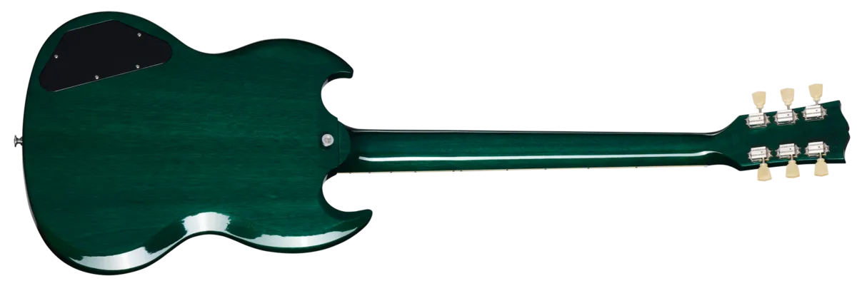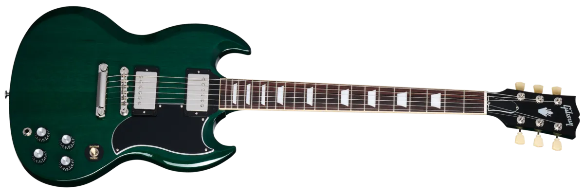 In 1961, the Les Paul™ model was put on hiatus, and an all-new design evolved into what is today known as the SG™ or "solid guitar." The Gibson SG Standard '61 retains the styling of the original featuring a Slim Taper™ mahogany neck and a bound rosewood fingerboard. The mahogany body features deeply sculpted body scarfing, a 5-ply teardrop pickguard, and a 22nd-fret neck joint. The nickel-plated hardware includes a classic-style Tune-O-Matic™ bridge and Keystone tuners. The pickups are 60s Burstbucker™ humbuckers™ for a classic voice with added power and top end. Controls feature audio taper potentiometers and Orange Drop® capacitors. A hardshell case is also included.