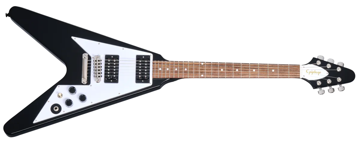 Metallica fans worldwide are familiar with Kirk Hammett’s 1979 Flying V. It was Kirk’s first Gibson and established his passion for Gibson guitars. Its purchase was inspired by famous Flying V™ players Kirk admired and because he was looking for a fuller sound. And what a sound! Kirk still plays the original guitar to this day, and used it on all the early Metallica albums, including Kill ‘Em All, Ride the Lightning, Master of Puppets, …And Justice for All, and The Black Album, making it one of the most important heavy metal guitars of all time. Now, Epiphone is partnering with the Gibson Custom Shop to release the Epiphone Kirk Hammett 1979 Flying V, a meticulous recreation of Kirk’s prized original. It features a mahogany body, a one-piece mahogany neck with volute, Grover® Rotomatic® machine heads with “spade” buttons, and a custom bridge. The electronics are also top-notch, with a pair of Gibson USA Calibrated T-Type humbucker™ pickups wired to CTS® potentiometers and an Orange Drop® capacitor, and a Switchcraft® 3-way pickup selector toggle switch and a 1/4” output jack. A Kirk Hammett logo adorns the rear of the headstock, and a black hardshell case with a red plush interior is also included.