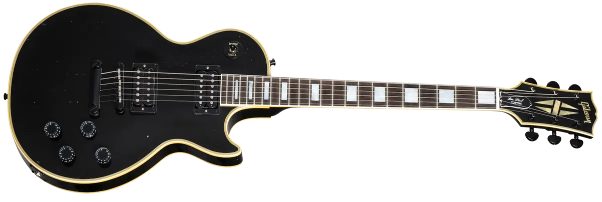 To fans of metal, Kirk Hammett needs no introduction. Longtime fans will also no doubt be familiar with his "blacked-out" 1989 Gibson Les Paul Custom, which he has used on numerous Metallica albums and tours. Now the Gibson Custom Shop has recreated this renowned guitar in exquisite detail. Like the original, the Kirk Hammett 1989 Les Paul Custom features all-black hardware, and per Kirk's wishes, it comes equipped with uncovered T-Type pickups, along with a Fishman Powerbridge piezo bridge pickup system with a Fishman Powerchip preamp and volume control that bring simulated full-bodied acoustic tone to this versatile Les Paul Custom. Artfully aged by the Murphy Lab to match the look and feel of Kirk's original 1989 Les Paul Custom, it is a fitting tribute to a metal guitar master and one of his favorite instruments.