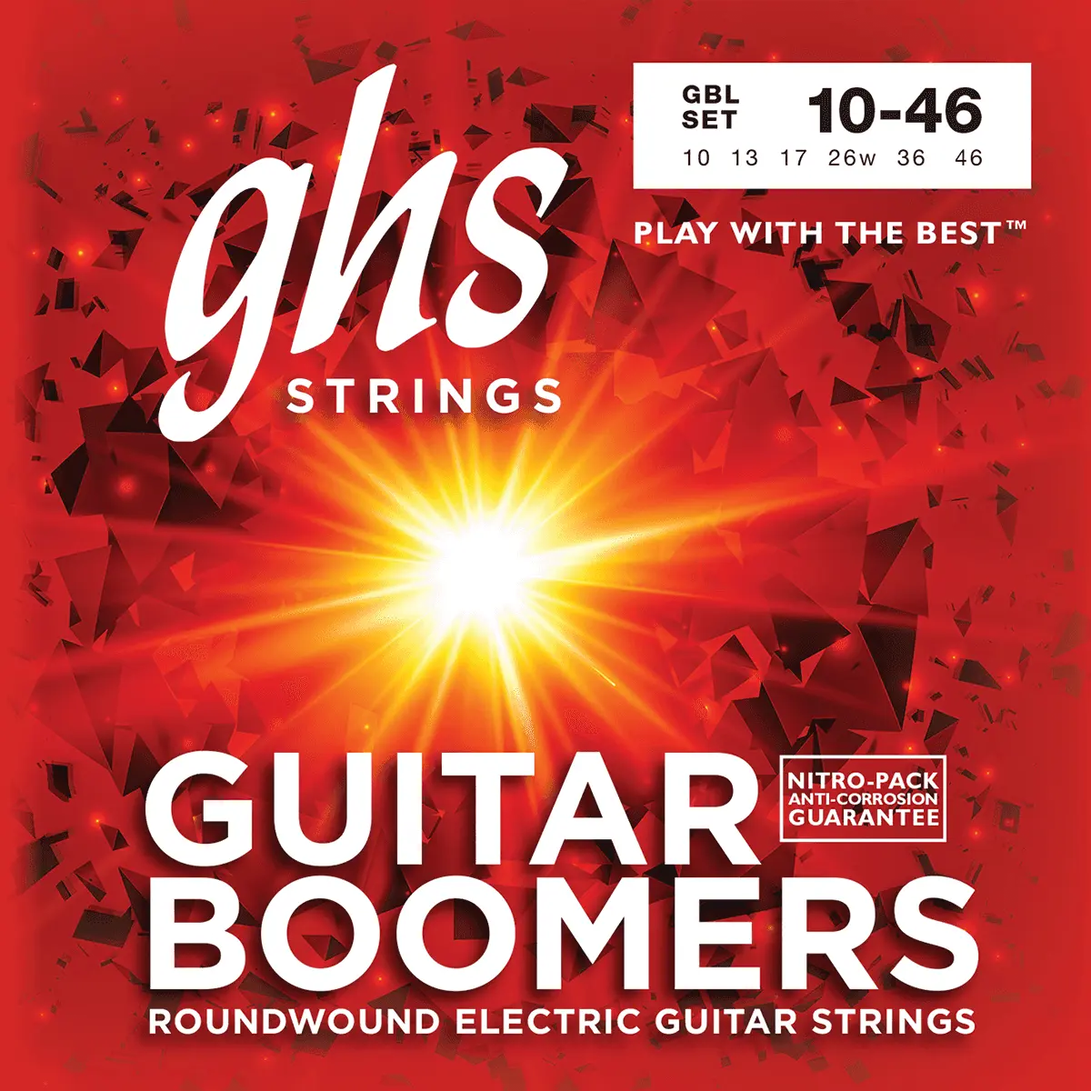 Since 1975, GHS Guitar Boomers™ have been THE POWER STRING, and continue to set the standard for musicians in nearly every genre of music. Nickel-plated steel wound over a round core brings a bright tone with a powerful attack, that lasts for an extended period of time. Each string is individually sealed in the GHS Nitro-Pack envelope (with our Anti-Corrosion Guarantee), ensuring they're as fresh as the day we wound them at our factory in Battle Creek, MI.