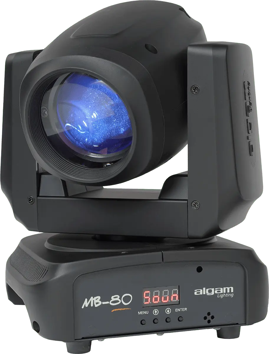 The MB80 is a beam projector with a highly powerful 80W white LED. Onboarding a wheel of 8 gobos with its 8-colour palette and a double rotating prism of 6 or 12 facets, this bluffing efficiency for its size projects light beams and patterns all as attractive as each other. Developed by a team of enthusiasts, the MB80 beam projector is compatible with a wide range of fixed or mobile applications. Its quiet motorization ensures smooth panning movements up to 540° and tilting up to 230° with a striking dynamism. DMX controllable through 11 or 13 channels for extended possibilities, or configurable via the integrated control panel, this moving head also operates in automatic, music-controlled or master/slave mode. Weighing only 3kg, the MB80 has a removable base plate system for safe head-down installations.