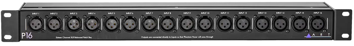 Ideal for any live PA rack, studio rack or fixed installation where easy access to XLR inputs are required, the P16 brings all rear-mounted XLR inputs from various devices to one, convenient single space rackmountable location. The P16 saves wear and tear on the connectors of expensive audio equipment by bringing all commonly used connections to the external patch bay.