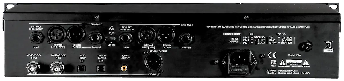 In addition to XLR and 1/4″ analog outputs, the Digital MPA-II features a high quality A to D converter which offers digital connectivity on S/PDIF, ADAT, or AES/EBU outputs. A rotary control on the front panel allows selection of format and sample rates from 44.1 to 192 KHz and 16 bit dithering. There is also a push button for, and two wordclock jacks, allowing loop-through.