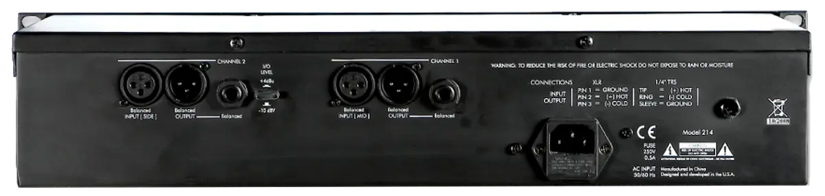 The ProMPA II can operate at either a low or high plate voltage on the two integrated hand-selected 12AX7 tubes for wider variation of preamp tone and performance. Large back-lit analog VU output meters display output levels while multi-colored LED arrays show tube gain.
