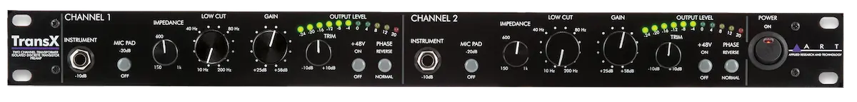 The TransX two channel microphone preamplifier features a new low noise discrete transformer coupled high performance preamplification circuit. Building upon the quality and success of great sounding products like the Pro MPA II and the Pro VLA II, ART engineers set out to develop the next generation of professional microphone preamplifier to compliment our tube-based preamps. The TransX sets a new standard for quality and value. Professional features and spectacular tone are what make the TransX a world-class microphone preamplifier.