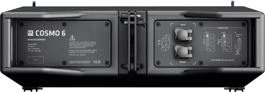 The wide horizontal dispersion of 100° and the low overall height make the compact C6 array an ideal solution for very wide audience areas. Thanks to its low weight, the C6 can meet high acoustic requirements, even with limited load capacity. The wide frequency range makes it perfect for use in pure speech applications without additional subwoofers. Two 6.5" transducers loaded to an acoustic coupler increase the maximum sound pressure level. When paired with subwoofers, the C 6 mid/high unit really shows its strengths for rock and pop gigs. It requires no adapters and leaves no gaps when combined with C10 and C 8 units, making the C 6 ideal as the bottom section of a mixed line array. All in all, considerably fewer components are needed than before to cover the full spectrum of what users need and expect from an FoH system. This extends the operating periods of each component compared to other system families. The uniform dimensions of the COSMO family simplify both storage and disposition, which has a positive impact on the warehousing in total. The line array is easy to handle, resulting in enormous time savings, as well as reduced training requirements. An existing system can be expanded precisely as needed, all of which means an effective investment protection is ensured. The expansion in small steps creates a much lower initial investment requirement.