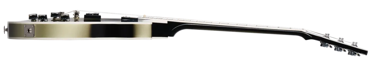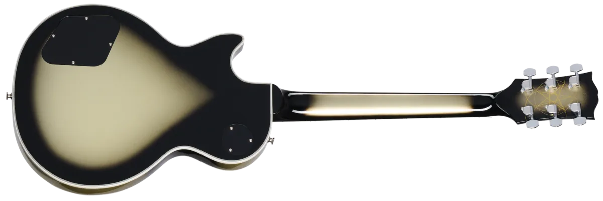 cap. Finished in Antique Silverburst, it also features a Custombucker pickup in theneck position and a Seymour Duncan® Distortion® in the bridge position, along with CTS® potentiometers and Orange Drop® capacitors. It also has a Gibson "open book" headstock profile and even comes with a replica two-inch convex mirror included in the Deluxe Protector Series hardshell case.