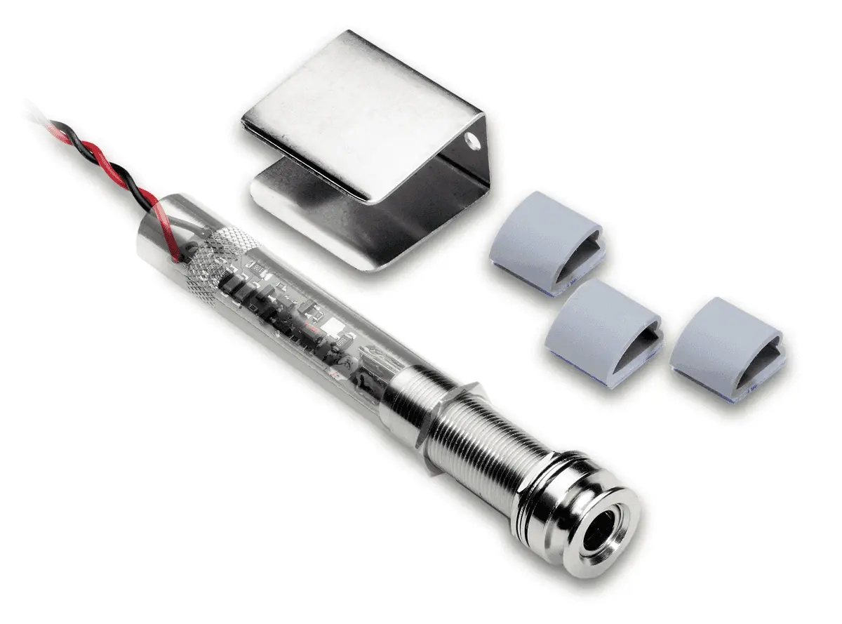 A MINIATURE ONBOARD PREAMP BUILT INTO AN ELONGATED ENDPIN JACK. THE POWERJACK WILL GIVE ACTIVE PERFORMANCE TO YOUR PASSIVE PIEZO PICKUP - 12,000+ HOUR BATTERY LIFE FROM A SINGLE 9-VOLT BATTERY!