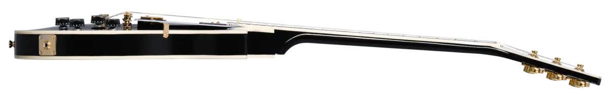 As part of the ongoing collaboration with Gibson TM Custom, Epiphone is proud to introduce the flagship Les Paul™ Custom to the Inspired by Gibson Custom lineup. Replete with all of the classy "tuxedo" appointments that the model is known for, this beautiful guitar has a one-piece mahogany neck with a 50s Rounded C profile, an ebony fretboard, and mother-of-pearl block fretboard inlays. T here are also mother-of-pearl split diamond and Epiphone logo headstock inlays on the Gibson-style "open book" headstock. Gold hardware, including Grover® Rotomatic® 18:1 gear ratio tuners, gives it even more visual appeal. The solid mahogany body has a maple cap for a touch of added sonic bite, while the Gibson USA 490R and 498T pickups provide tonal sophistication and plenty of muscle to back up all the beauty. They're hand-wired to CTS® potentiometers, a Switchcraft® output jack and pickup select switch, and Mallory ™M capacitors. An Inspired by Gibson Custom double diamond logo is on the back of the headstock, and a black hardshell case with the Inspired by Gibson Custom logo and a goldenrod interior is also included.