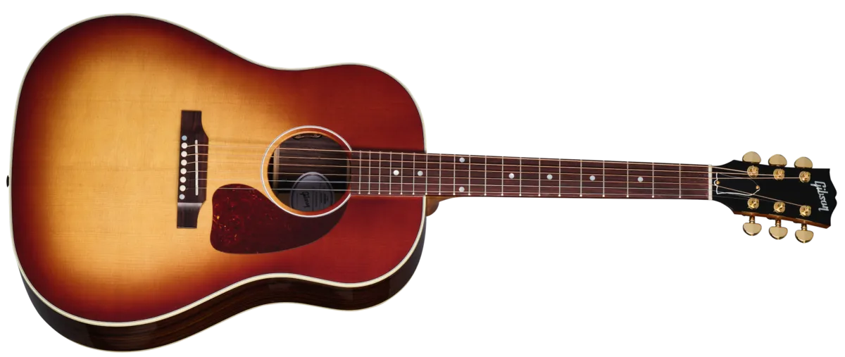 The J-45™ is Gibson's best-selling acoustic of all time. Nicknamed "The Workhorse" and first introduced in 1942, this iconic acoustic has become the cornerstone of our round-shoulder, dreadnought line. We are pleased to release a new version of the J-45 Standard with rosewood back and sides that delivers all of the playing and sonic characteristics you'd expect from the world-renowned J-45 but with slightly fuller bass response and overtone complexity due to the rosewood body. Also available as a left-handed model, these exceptional acoustic guitars come complete with an L.R. Baggs™ VTC under-saddle pickup and preamp system, making them stage and studio-ready from the moment you take them out of the included hardshell case.
