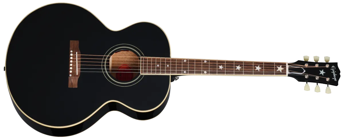 The Gibson J-180 has been the choice of rock, country, and pop royalty, including legendary artists like the Everly Brothers, Cat Stevens, Dwight Yoakam, and Billie Joe Armstrong, up to some of today's most famous artists. In collaboration with the Gibson T Custom Shop, Epiphone is proud to release a new version of this player-favorite guitar. The Epiphone J-180 LS is packed with premium features, including a thermally aged solid spruce top with scalloped X bracing, solid mahogany back and sides, a one-piece mahogany neck with a 25.5" scale length, c-profile, laurel fretboard, and the iconic "star" mother of pearl inlays that the model is so well known for. The compensated saddle, bridge pins, and nut are bone, and the headstock features the world-famous Gibson-style "open book" headstock shape, with the Epiphone logo and headstock star proudly displayed in mother of pearl. An Inspired by Gibson Custom Double Diamond emblem is etched on the rear of the headstock. Available in a variety of eye-catching colors and equipped with an L.R. Baggs ™ VTC under-saddle pickup and preamp system, this exceptional guitar is stage and studio-ready from the moment you take it out of the included hardshell case.