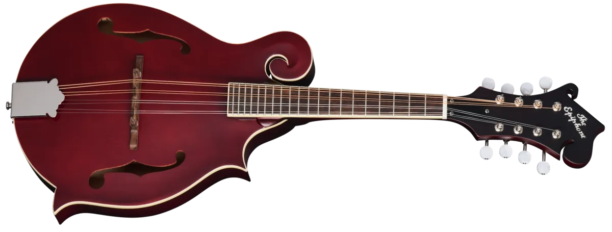 Orville Gibson invented the modern mandolin, and mandolins have been a part of Epiphone's DNA since its earliest days. Company founder Anastasios Stathopoulo's first (and only) patent, filed in 1909, was for a mandolin. Gibson Master Luthier Lloyd Loar designed the original F-5 mandolin in the early 1920s, and its eventual success led to the creation of new musical genres, such as bluegrass. Now, Epiphone is proud to release its latest mandolins. The Epiphone Inspired by Gibson F-5 Studio mandolin is based on the legendary Loar-designed F-5 and makes a high-quality F-5 style mandolin more accessible than ever. It features all-solid wood construction with a solid maple back and sides and a solid Sitka spruce top. The maple neck is attached to the body with a glued dovetail joint and has a laurel fretboard with 20 frets and a Gibson-style scroll headstock with vintage-style tuners with pearloid buttons. Its sound is balanced, highly toneful, and resonant, with great carrying power, in part due to the thin satin finish. A premium gig bag is also included.