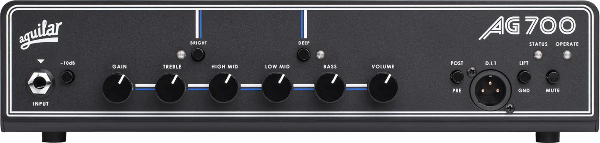 Designed for bassists who demand a pristine, hi-fi sound that's both articulate and responsive, the AG series stands apart. Compared to the tube-like warmth of the Tone Hammer series, the AG series offers a transparent tone that allows the natural voice of your bass to shine clearly. It features our most comprehensive EQ set with Bass, Low Mid, High Mid, and Treble controls, complemented by Deep and Bright broadband boosts. Equipped with the Aguilar Cabinet Suite, universal mains, and expanded connectivity options, the AG series meets the performance needs of bassists, ensuring a flawless blend between live, studio, and at-home settings.